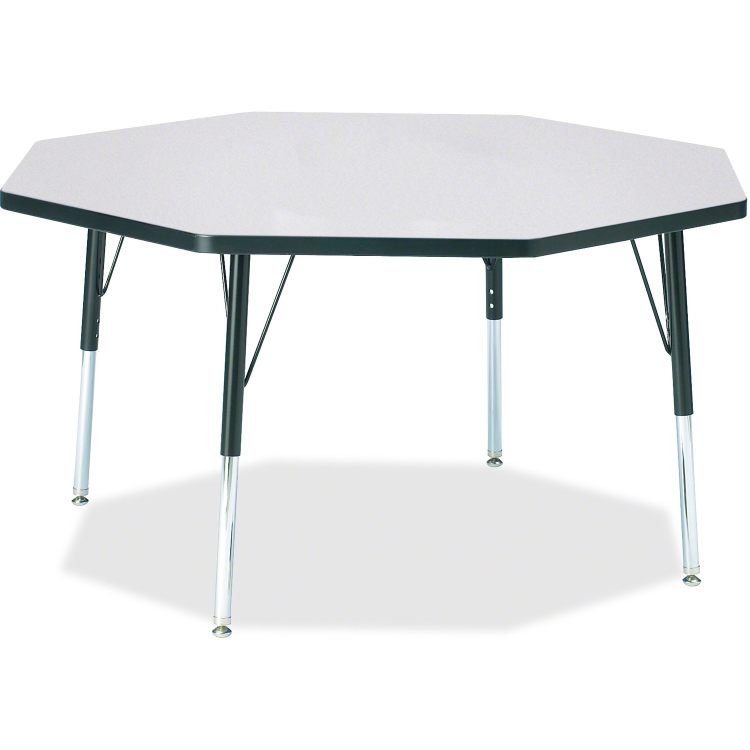 Let children safely work on their favorite arts and crafts on this octagon activity table. Laminate is durable and features an easy-to-clean surface. TRUEdge is permanently thermo-fused to the edges to prevent chipping. Extra-safe, dual-screw steel legs allow you to easily adjust the height of the table. Powder-coated, adjustable legs can be repositioned in 1" increments to provide maximum comfort for children. Leg guides reduce squeaks, prevent snags and eliminate rusting.